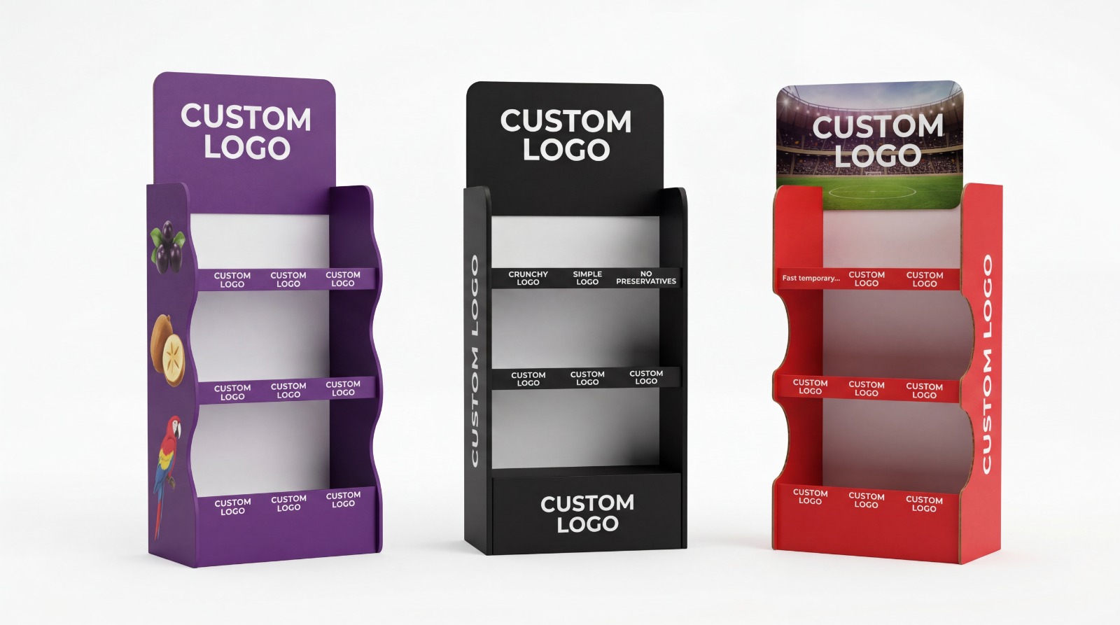 Duże standy podłogowe do sklepów, marketów i punktów sprzedaży. Idealne do ekspozycji produktów i zwiększenia sprzedaży.